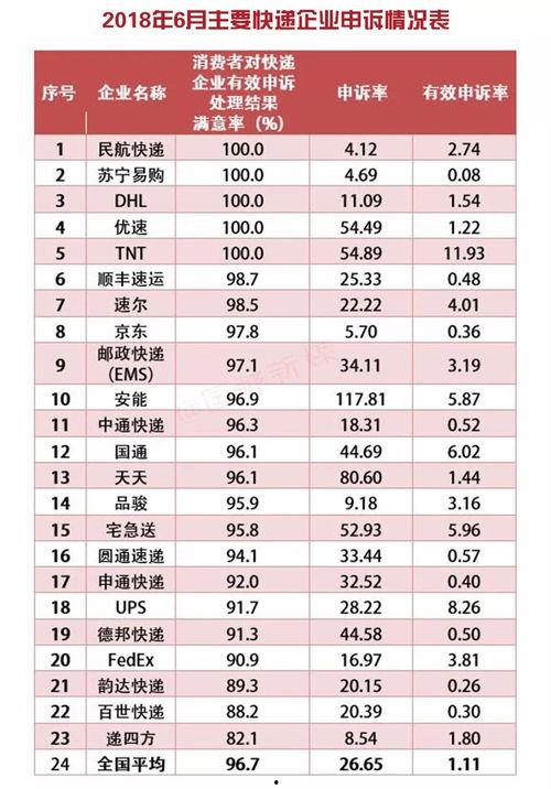 首先,咱们得聊聊那些在快递申诉红榜上闪耀的明星。根据最新的数据,以下几家快递公司凭借出色的服务赢得了消费者的青睐。